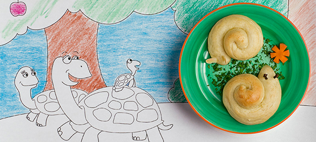 • Ao enrolar o bastão de massa, deixe uma das pontas soltas (cabeça do caracol). Espete 2 cravos como se fossem antenas.
