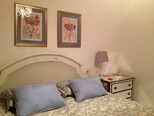 Ela trouxe os tecidos de uma viagem e mandou fazer a colcha, as almofadas, a cadeira, a cortina e as cúpulas do abajur e do lustre.